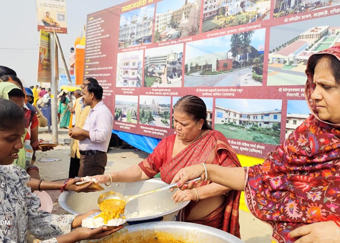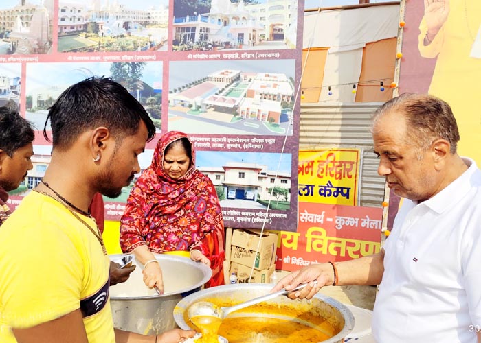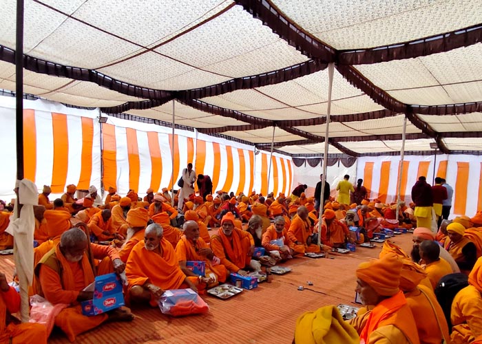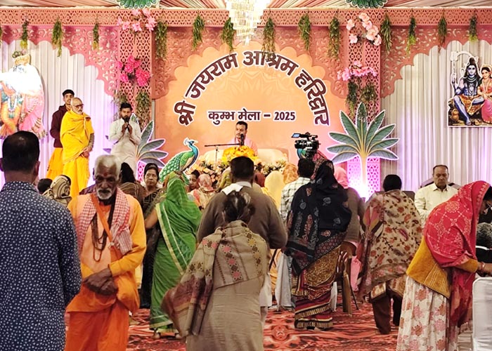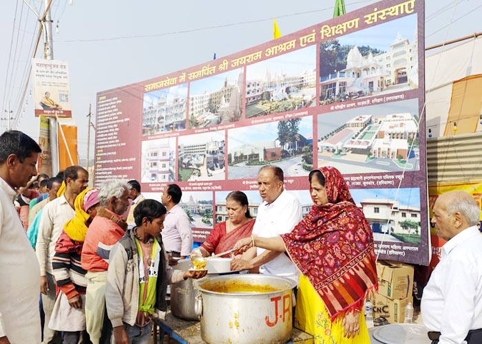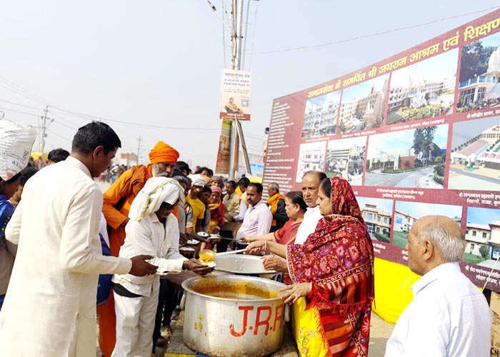 श्री जयराम आश्रम शिविर में चल रही श्रीमद्भागवत कथा एवं प्रतिदिन श्रद्धालुओं की सेवा का दृश्य